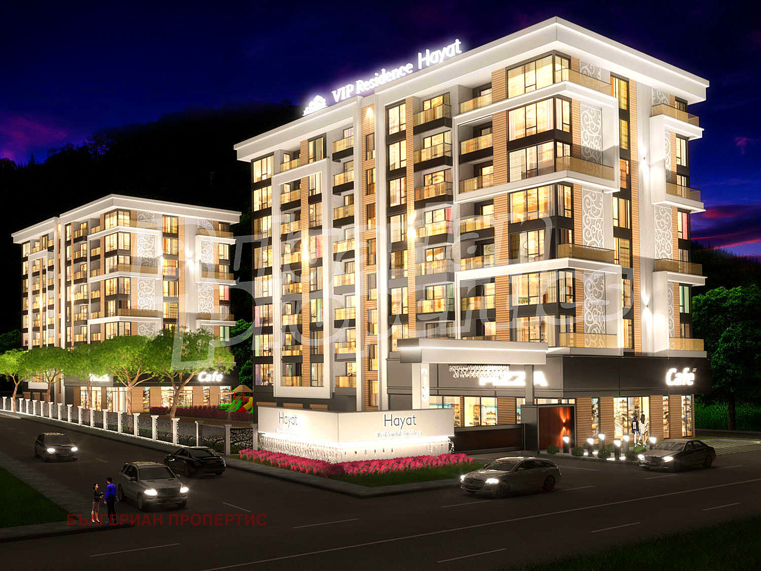 Комплексът включва две жилищни сгради, разположени в изцяло затворена територия с контрол на достъпа, гарантираща спокойствието и сигурността на жителите. В допълнение към удобствата са предвидени вътрешен детски кът, просторни външни детски площадки, зелена поляна с барбекю зони, магазини, както и възможности за паркиране както в подземни гаражи, така и на външни паркоместа. Газификацията на комплекса допълнително осигурява комфорт и икономия на разходи за отопление.