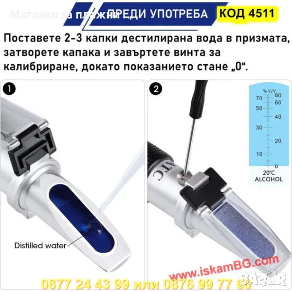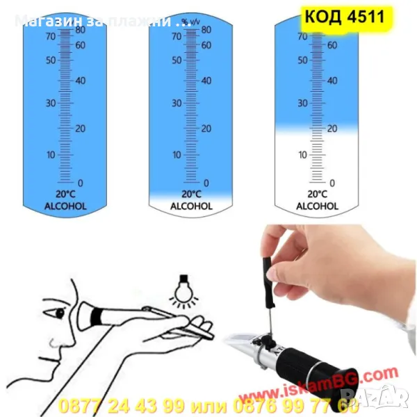 1 x Алкохолен рефрактометър с метален корпус