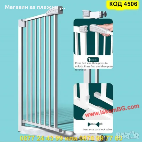 Създайте безопасна среда за вашето дете или домашен любимец с тази висококачествена разширяема метална преграда. Подходяща за врати, коридори и стълбища, тя осигурява надеждна защита без необходимост от пробиване или трайни монтажи.
