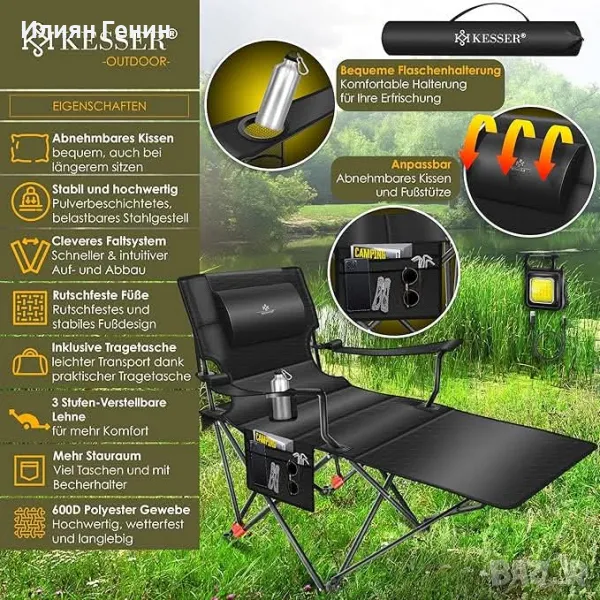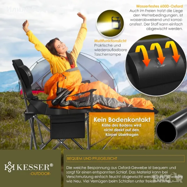 Къмпинг стол KESSER® 2 в 1, шезлонг, до 160 кг | Сгъваемо походно легло