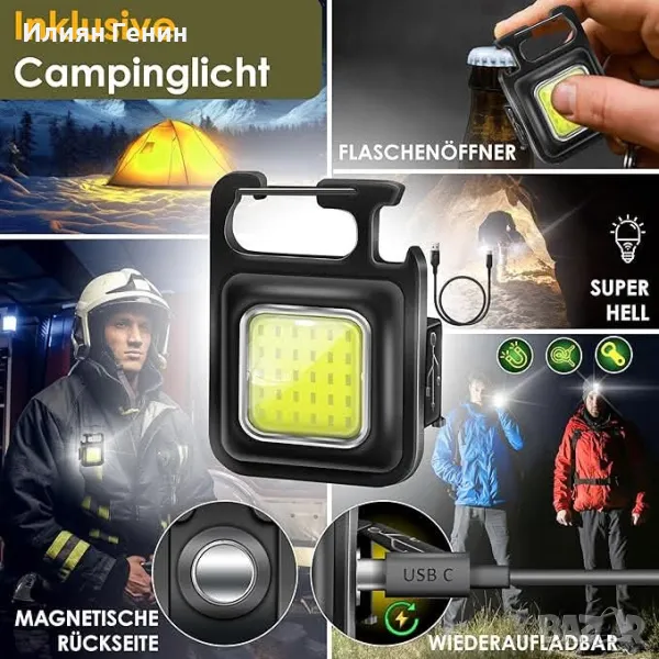 Къмпинг шезлонга KESSER се предлага с многофункционална къмпинг светлина, която осигурява супер ярка светлина и е презареждаща се. Светлината има магнитен гръб и вградена отварачка за бутилки, което я прави удобен спътник за нощни приключения. Този иновативен аксесоар допълва многофункционалните функции на шезлонга и го прави още по-полезен за вашите дейности на открито.