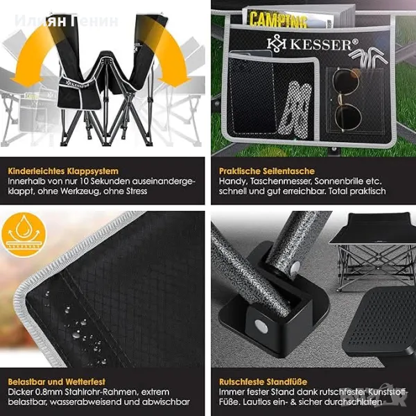 ИЗДРЪЖЛИВОСТ И ХАРДЕР: Здравата конструкция на къмпинг леглото KESSER Premium се дължи на металната му конструкция. Дебелата рамка от стоманени тръби с дебелина 0,8 мм с кръгъл дизайн осигурява още по-голяма стабилност от конвенционалните къмпинг легла и е водоустойчива и устойчива на корозия. Това означава, че можете лесно да използвате леглото на открито, без да се притеснявате от дъжд или влага.