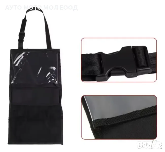 Мултифункционален органайзер за автомобилна седалка с 3 отделения.