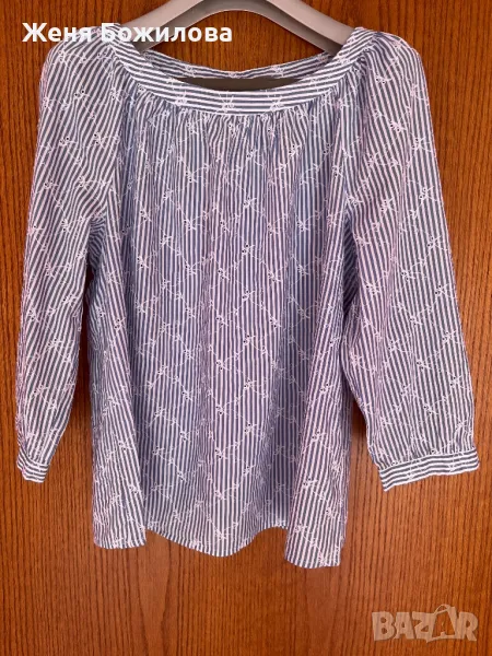 Дамска блуза в бяло-синьо райе с 3/4 ръкав.Материал:памук.Размер:L