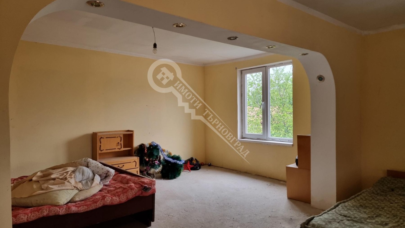 Имоти Търновград предлага на Вашето Къщата е с РЗП от 130 кв.м и има следното разпределение: Нова част - кухня с всекидневна, две стаи, баня и тоалетна; Стара част - коридор и шест стаи, които имат нужда от ремонт. Старата част е започнат ремонт на първи етаж който е предвиден за механа с отделен вход и още една отделна стая. Дограмата е частично подновена, подовите настилки са теракот и дюшеме, покривът няма течове. Дворът е с площ от 430 кв.м, ограден и равен. Оферта : 14817