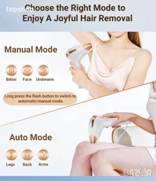 Това IPL устройство за епилация предлага дизайн 3 в 1 с режими HR, SC и RA за ефективно насочване към различни зони. Разполага с 9 регулируеми енергийни нива, което го прави подходящ за различни типове кожа и нужди от обезкосмяване. Технологията с дълги светлинни вълни (600NM-1200NM) прониква дълбоко в космените фоликули за прецизни и трайни резултати, като същевременно минимизира дискомфорта. Той включва както автоматичен режим за големи зони като крака и ръце, така и ръчен режим за прецизност на по-малки зони като лицето и подмишниците. С изключително дълъг живот от до 999 900 светкавици, той осигурява дълготрайна употреба, което го прави рентабилно и професионално решение за обезкосмяване.