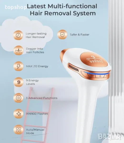 3 в 1 HR/SC/RA IPL устройство за обезкосмяване, 9 енергийни нива, 21J лазерен епилатор
