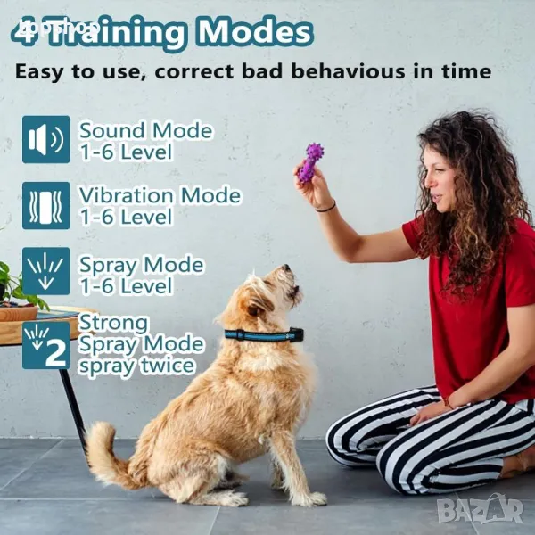 HOMELYLIFE Нашийник против лай за кучета Спрей/Вибрация/Звукови режими с дистанционен обхват 300 м