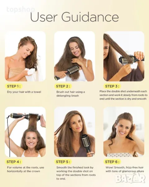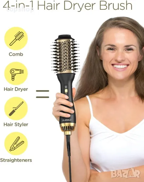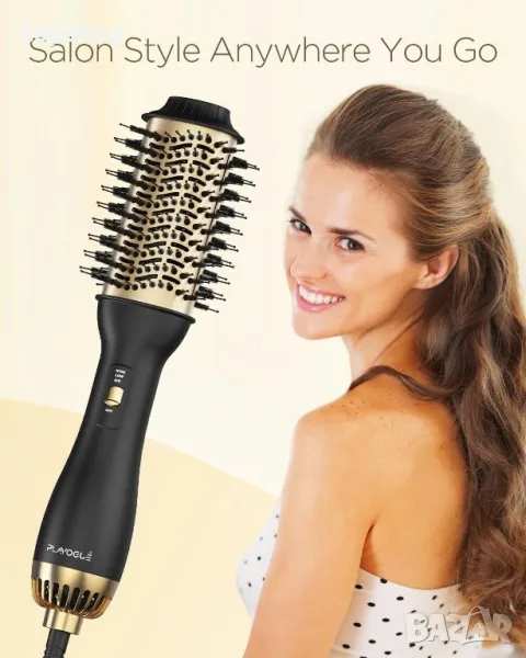Тази професионална четка за изсушаване на коса разполага с уникална керамична титанова технология и излъчва 100 милиона отрицателни йони, намалявайки къдренето с 30% и насърчавайки по-бързото изсушаване. Задържа влагата в корените за по-блестящ и по-здрав стил, като същевременно минимизира щетите и равномерно разпределя топлината, за да насърчи растежа на косата. Дизайнът "всичко в едно" ви позволява да създавате къдрици, да изглаждате къдриците и да увеличавате обема, предлагайки ефективно издухване с качество на салона. Неговата ексклузивна овална форма с 360° въздушен поток, заоблени ръбове, найлонов щифт и туфтинг влакна подобряват обема, оформянето и контрола. Четката предлага и 3 настройки за топлина/скорост, които се грижат за всички типове коса за по-бързо изсушаване и гъвкаво оформяне.