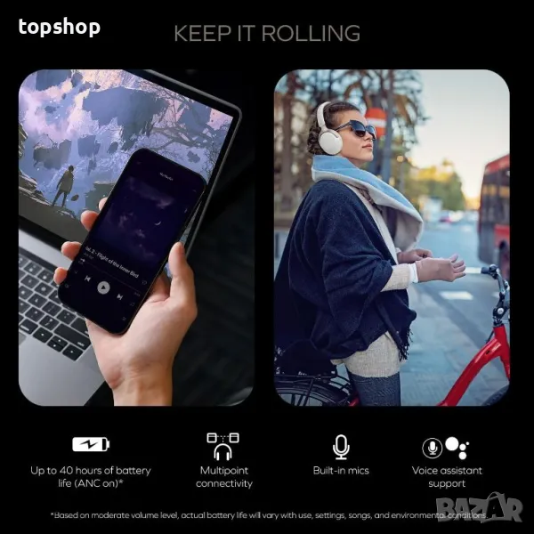 Слушалките SUPER X-FI Spatial Holography пресъздават дълбочината и звуковата сцена на система с множество високоговорители. Оборудвани с персонализирани 40 мм неодимови драйвери за прецизни високи и ниски честоти и режим с ниска латентност за безпроблемен стрийминг, те могат да бъдат персонализирани чрез EQ модула на приложението Creative. Изберете между Hybrid ANC, Adaptive ANC или Ambient Mode, за да управлявате ефективно околния шум. Тези слушалки предлагат както безжични (Bluetooth 5.3), така и кабелни (3,5 mm AUX) опции и поддържат многоточково свързване. Насладете се на до 70 часа време за игра (ANC изключен) или 40 часа (ANC включен), заедно с вградени микрофони, плюшени възглавнички за уши, удобна лента за глава и въртящи се на 90° наушници.