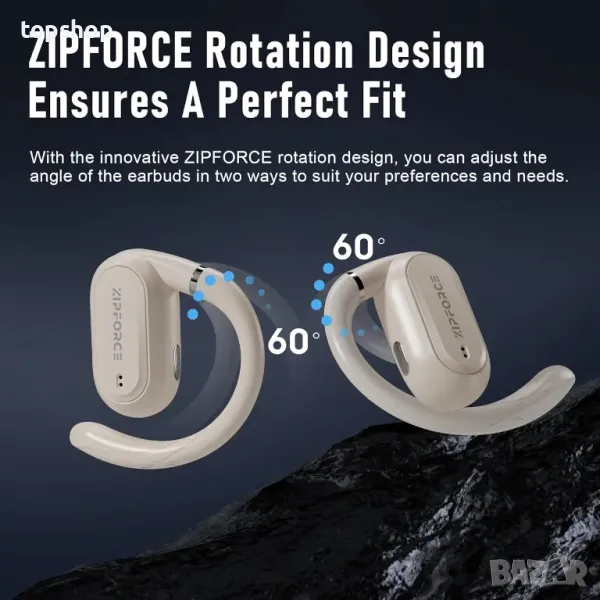 ZIPFORCE безжични слушалки с отворено ухо, Bluetooth 5.3, IPX6, жълти