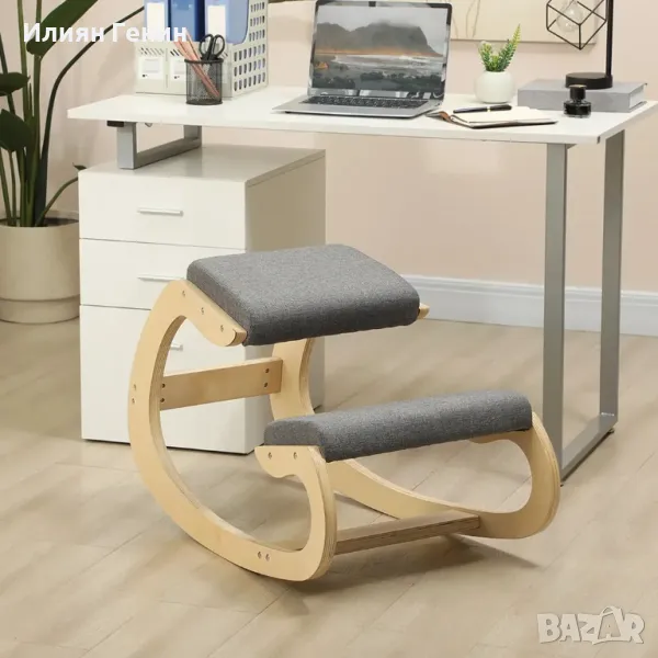 Ергономичен люлеещ се стол за коляно HOMCOM за домашен офис за подобряване на стойката, сив - 180.00лв.