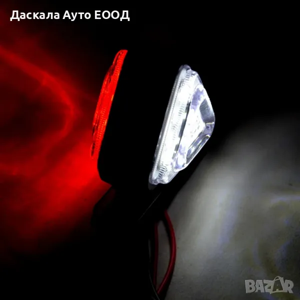 1бр. Триъгълно ЛЕД LED рогче с 18 диода, червено-бяло, 12-24V