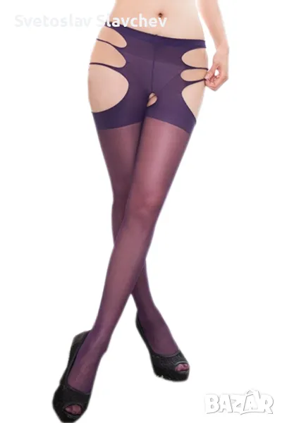 Продавам Дамски чорапогащник с изрезки и отворено дъно,Рочена ликра универсален размер SM INTL цвят наличен само в черно
