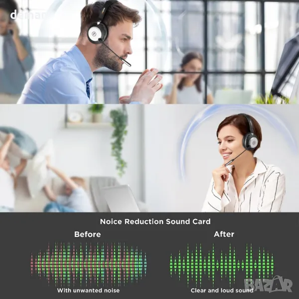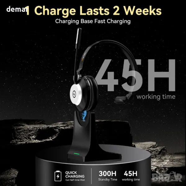 Bluetooth слушалка с микрофон с шумопотискане, USB адаптер, зарядна станция