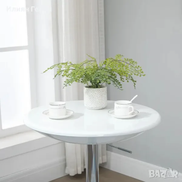 ЕЛЕГАНТЕН ДИЗАЙН: Семплият и бял лакиран плот на масата със сребърна метална основа е перфектно допълнение към модерни домашни барове, тераси, кръчми, партита и ресторанти.