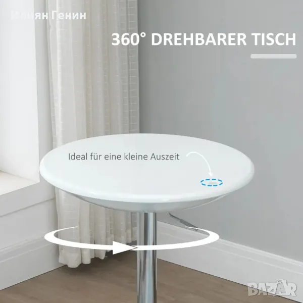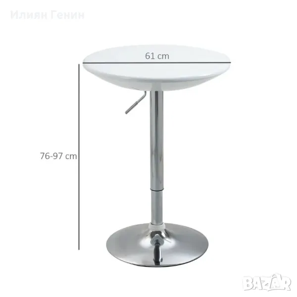 HOMCOM бар маса с регулируема височина, метал ABS лак бяло Ø61 x 76-97 см - 120.00лв.