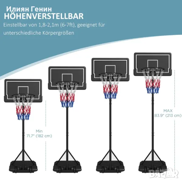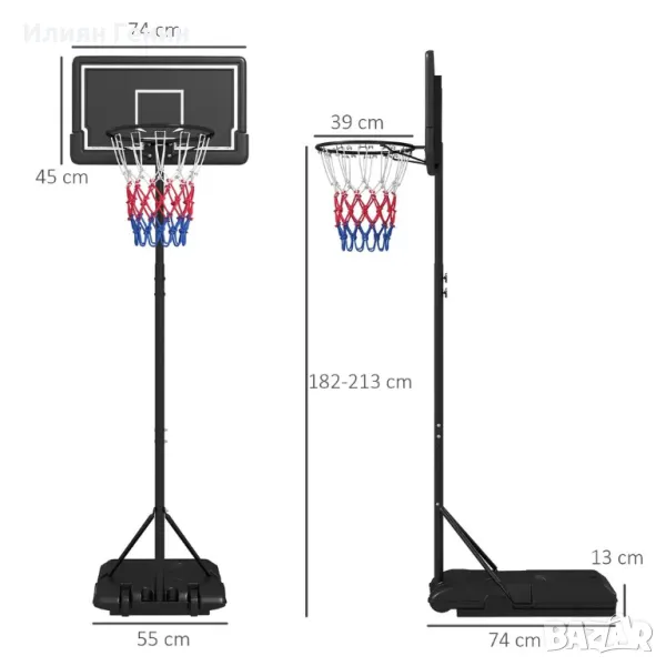 ✔ Размер на баскетболния кош: Ø39 см, 182-213H см