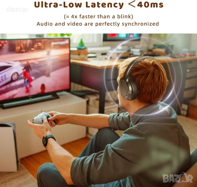 Тези безжични телевизионни слушалки подобряват яснотата на диалога за по-завладяващо зрително изживяване, правейки речта и звуковите ефекти ясни и лесни за следване. С ултра ниска латентност под 40 ms, звукът остава перфектно синхронизиран с действието на екрана, дори през стени на разстояние до 50 метра. Проектирани за продължително носене, те предлагат 25 часа живот на батерията и разполагат с меки протеинови кожени наушници и регулируема лента за глава за удобно прилягане по време на дълги сесии - идеални за филми, предавания или спортни събития до късно през нощта, без да безпокоите другите.