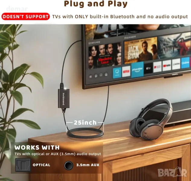 Безжични слушалки Holdsound за слушане на телевизия, USB удължителен кабел - предавател