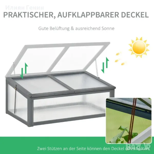 Ефективна защита: Прозрачният поликарбонатен панел на студената рамка ефективно предпазва вашите растения от лек вятър и ръмеж и ги поддържа приятно топли. Мини дървената оранжерия създава оптимални температурни условия