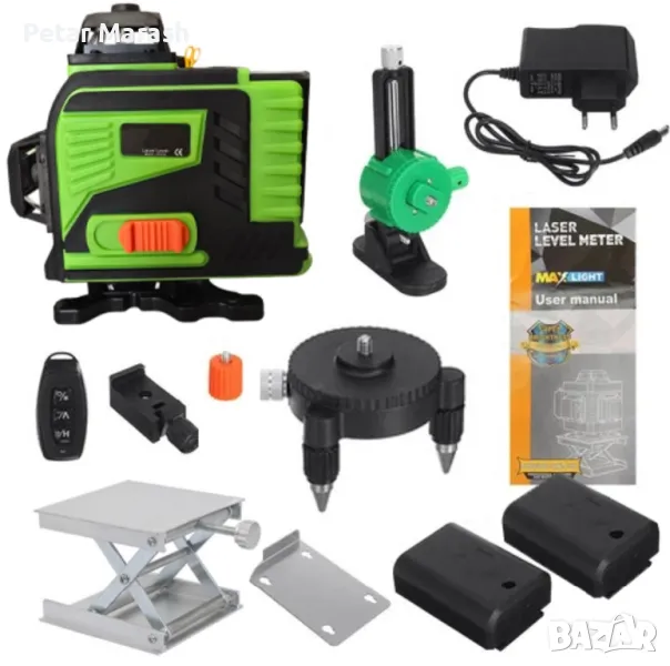Самонивелиращата система с обхват до 30 метра елиминира нуждата от ръчни настройки, а зелените лазерни лъчи остават ясно видими дори при по-слаба светлина. Уредът работи с две мощни литиево-йонни батерии с капацитет по 6000mAh, което осигурява до 16 часа непрекъсната работа. Можете да управлявате функциите както ръчно, така и с включеното дистанционно.