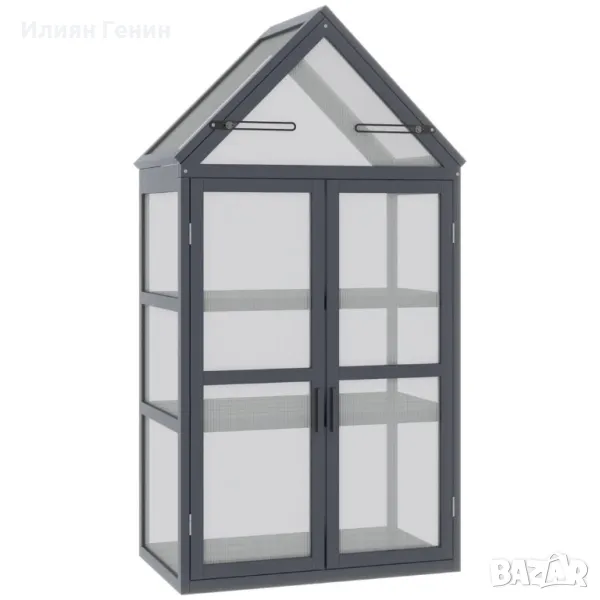 мини оранжерия 3 нива с панти, покрив двойни врати изработени от дърво поликарбонат устойчив на атмосферни влияния естествен 70,5 x 42 x 132 см - 130.00лв.