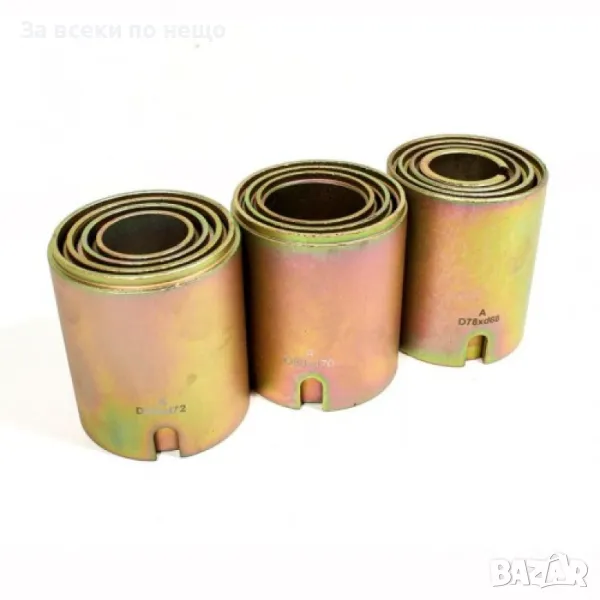 Втулки за избиване – златисти: 44 x Ø34, 46 x Ø36, 54 x Ø44, 56 x Ø46, 58 x Ø48, 66 x Ø56, 68 x Ø58, 70 x Ø60, 78 x Ø68, 80 x Ø70, 84 x Ø72