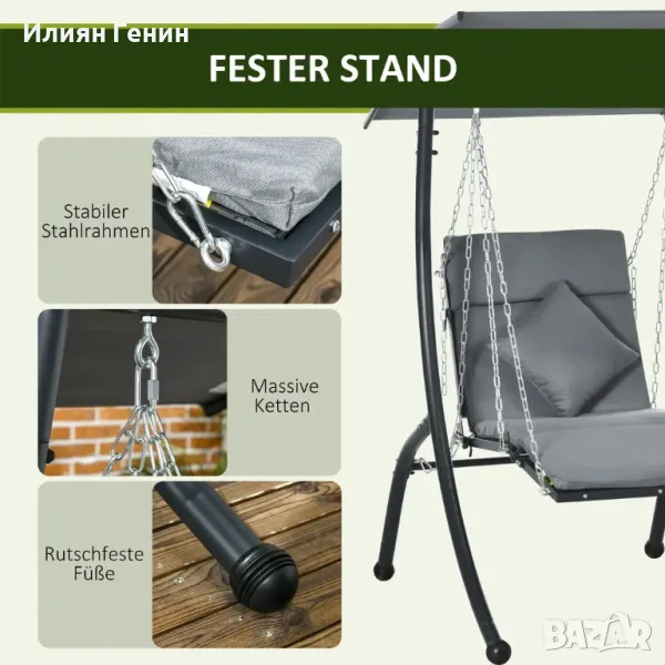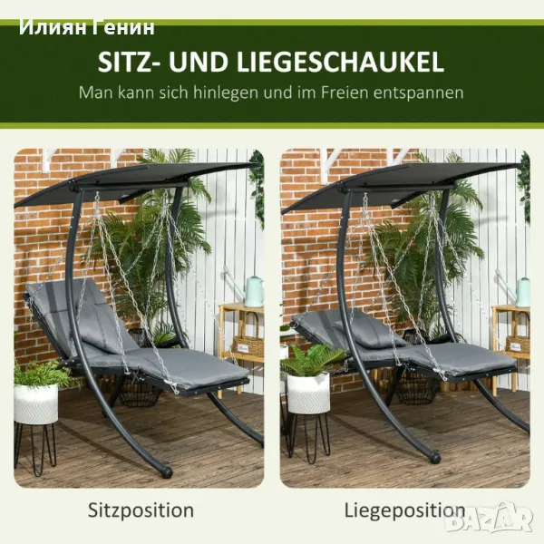 Комфорт на двойна люлка: Нашата градинска люлка може да се регулира в две удобни позиции: или удобно седене, или релаксиращ шезлонг, което предлага възможност за спонтанна дрямка, за да завършите деня по приятен начин.