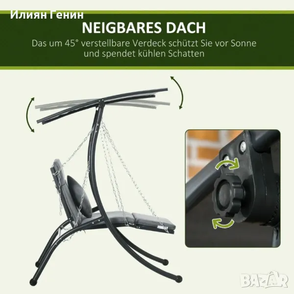 Висящ шезлонг Outsunny, накланящ се покрив, включително възглавница за седалка, възглавница