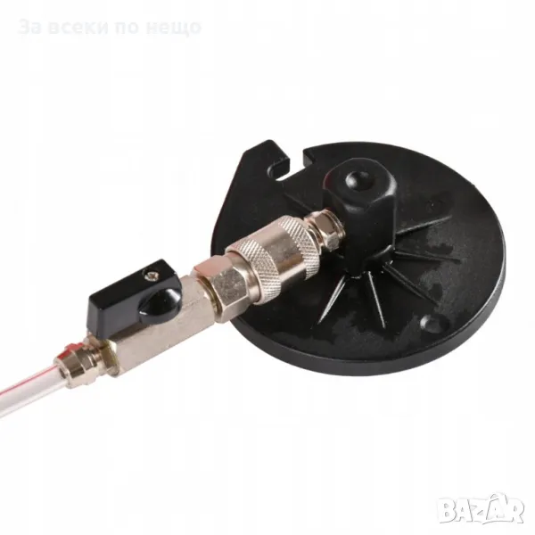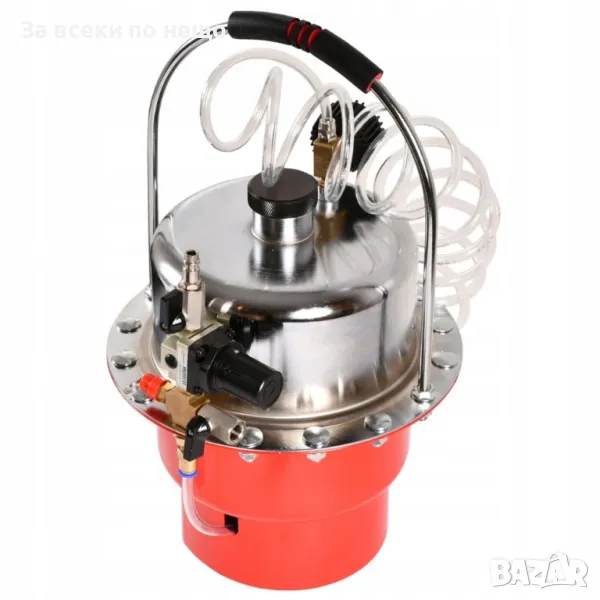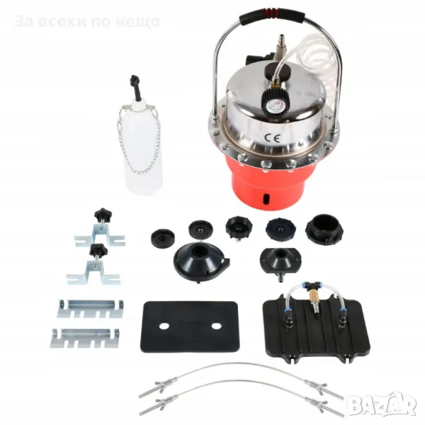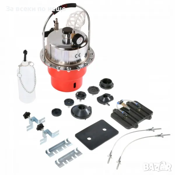 Сервизен комплект за спирачна система. Устройството позволява един човек лесно и бързо да смени течността в спирачната система и хидравличния съединител. Комплектът също ви позволява бързо обезвъздушаване на спирачната система. Комплектът включва удобен куфар с комплект адаптери, които позволяват работата на повечето спирачни системи.