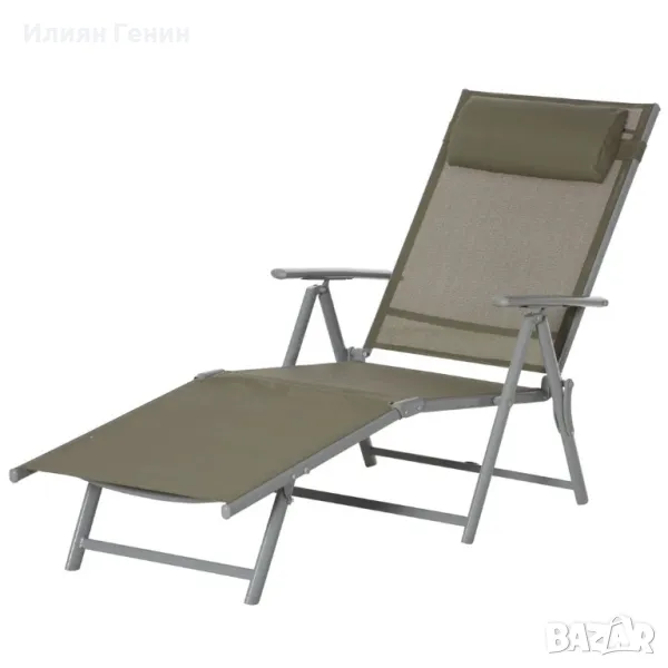 Шезлонг Outsunny, плажен шезлонг, градински шезлонг, сгъваем шезлонг с възглавница, плажен, метал + плат, каки, 137 x 63,5 x 100,5 см - 140.00лв.