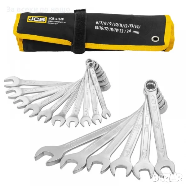 JCB представя комплект от 16 броя звездогаечни ключове 6 - 24 мм., изработени от висококачествена хром-ванадиева стоманена сплав, която придава изключителна здравина и надеждност по време на работа с тях.
