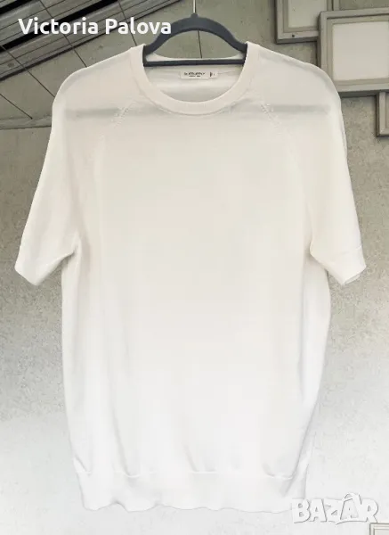 Идеална неизползвана блуза тип тениска от холандски премиален бранд, концепцията на марката е “Създаване на идеална форма без проба”, продуктите се изработват от италиански материали екстра качество. Материята на блузата е 70% памук , 30% коприна - плътна, има разтегливост, цвят екрю. ГО - 53см, дължина - 72см.
