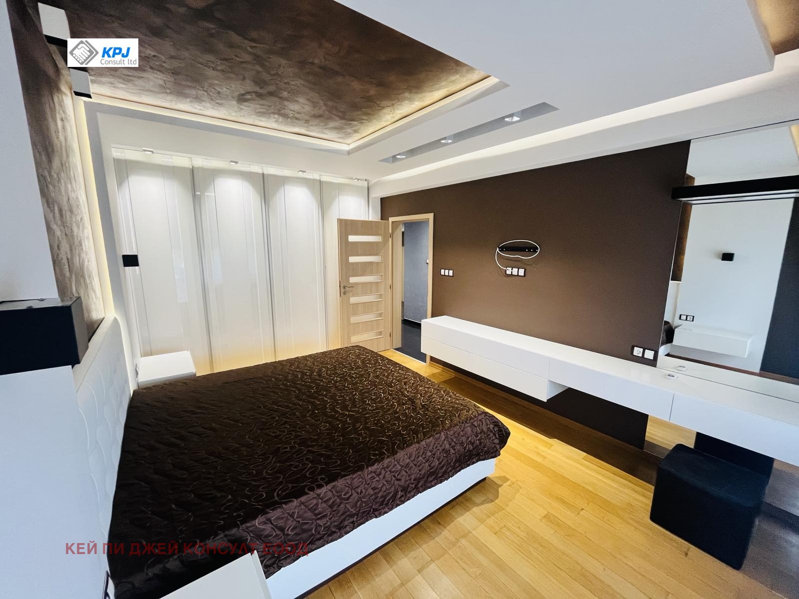 - Огромен гардероб в спалнята с множество пространства за съхранение на голям сет от дрехи.
