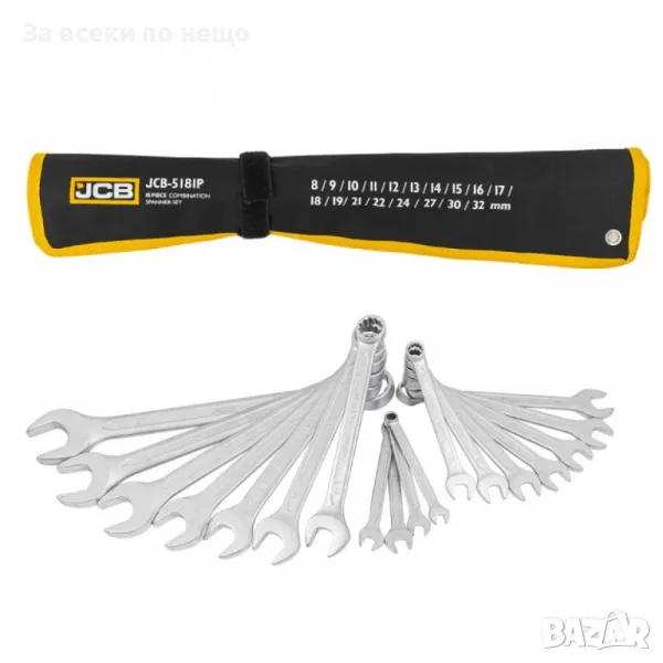 JCB представя комплект от 18 броя звездогаечни ключове 8 - 32 мм., изработени от висококачествена хром-ванадиева стоманена сплав, която придава изключителна здравина и надеждност по време на работа с тях.