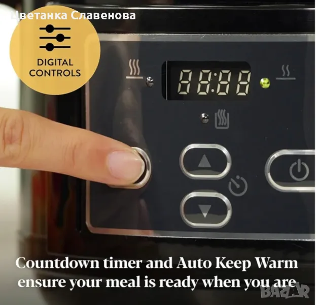 Цифров таймер - Задайте време за готвене от 30 минути до 20 часа. Автоматичното поддържане на топлината означава, че ястието ви е готово, когато сте готови.