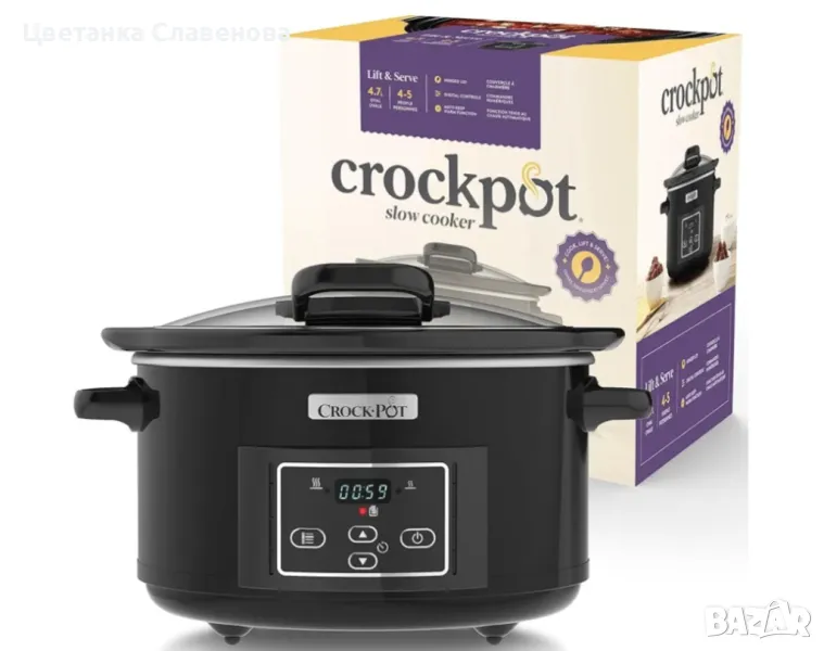 Дигитален уред за бавно готвене Крок-Пот 4.7л с прикачващ се капак