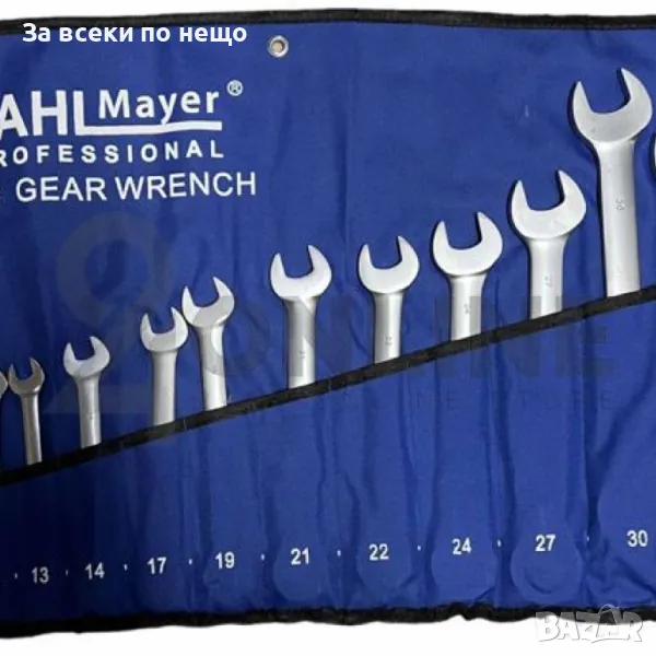 Професионален комплект звездогаечни ключове № 8 до 32 мм: 8, 10, 12, 13, 14, 17, 19, 21, 22, 24, 27, 30, 32