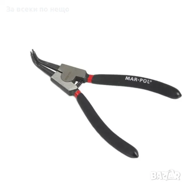 Клещите Mar-Pol се използват за монтаж и демонтаж на закрепващи халки. Има 2 вида защита: вътрешна (разширение вътре в ръкава) и външна (затягане, извън вала). Целият комплект е пригоден за работа с външни и вътрешни пръстени. Имат прави и извити върхове. Клещите са изработени от издръжлива и високоякостна CrV хром-ванадиева стомана, с двуцветни гумени дръжки. Покрит с устойчиво никелово покритие.