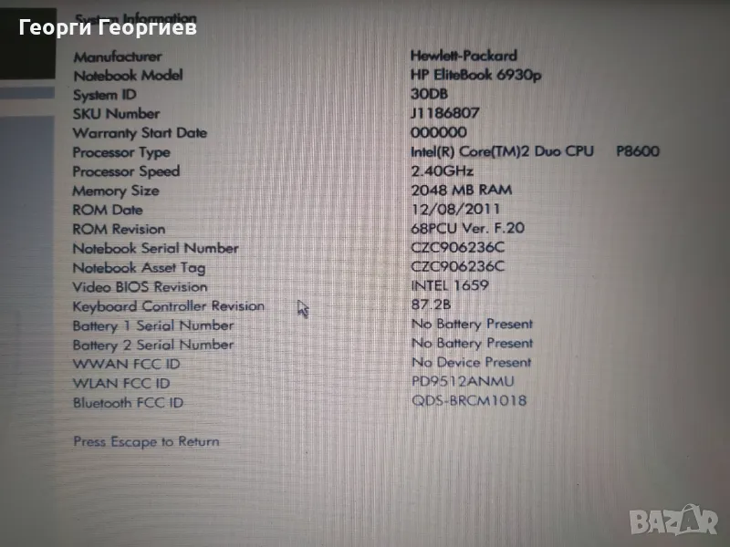 Продавам лаптоп на части HP Elitebook 6930p, снимка 1 - Части за лаптопи - 50360920 Продавам лаптоп на части HP Elitebook 6930p, снимка 2 - Части за лаптопи - 50360920 Продавам лаптоп на части HP Elitebook 6930p, снимка 3 - Части за лаптопи - 50360920 1/3