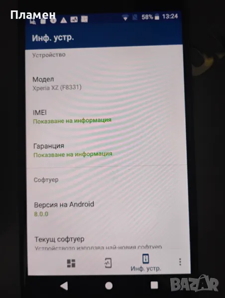 Телефон Sony Xperia XZ F8331 32/3GB RAM перфектен външен вид, за смяна на батерия и микрофон, снимка 1 - Sony - 50361029 Телефон Sony Xperia XZ F8331 32/3GB RAM перфектен външен вид, за смяна на батерия и микрофон, снимка 2 - Sony - 50361029 Телефон Sony Xperia XZ F8331 32/3GB RAM перфектен външен вид, за смяна на батерия и микрофон, снимка 3 - Sony - 50361029 Телефон Sony Xperia XZ F8331 32/3GB RAM перфектен външен вид, за смяна на батерия и микрофон, снимка 4 - Sony - 50361029 Телефон Sony Xperia XZ F8331 32/3GB RAM перфектен външен вид, за смяна на батерия и микрофон, снимка 5 - Sony - 50361029 Телефон Sony Xperia XZ F8331 32/3GB RAM перфектен външен вид, за смяна на батерия и микрофон, снимка 6 - Sony - 50361029 Телефон Sony Xperia XZ F8331 32/3GB RAM перфектен външен вид, за смяна на батерия и микрофон, снимка 7 - Sony - 50361029 Телефон Sony Xperia XZ F8331 32/3GB RAM перфектен външен вид, за смяна на батерия и микрофон, снимка 8 - Sony - 50361029 Телефон Sony Xperia XZ F8331 32/3GB RAM перфектен външен вид, за смяна на батерия и микрофон, снимка 9 - Sony - 50361029 Телефон Sony Xperia XZ F8331 32/3GB RAM перфектен външен вид, за смяна на батерия и микрофон, снимка 10 - Sony - 50361029 Телефон Sony Xperia XZ F8331 32/3GB RAM перфектен външен вид, за смяна на батерия и микрофон, снимка 11 - Sony - 50361029 Телефон Sony Xperia XZ F8331 32/3GB RAM перфектен външен вид, за смяна на батерия и микрофон, снимка 12 - Sony - 50361029 1/12