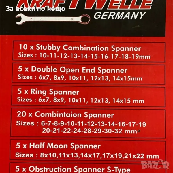 Професионални комбинирани ключове 50 части , изработени от хром ванадиева стомана , марка KraftWelle