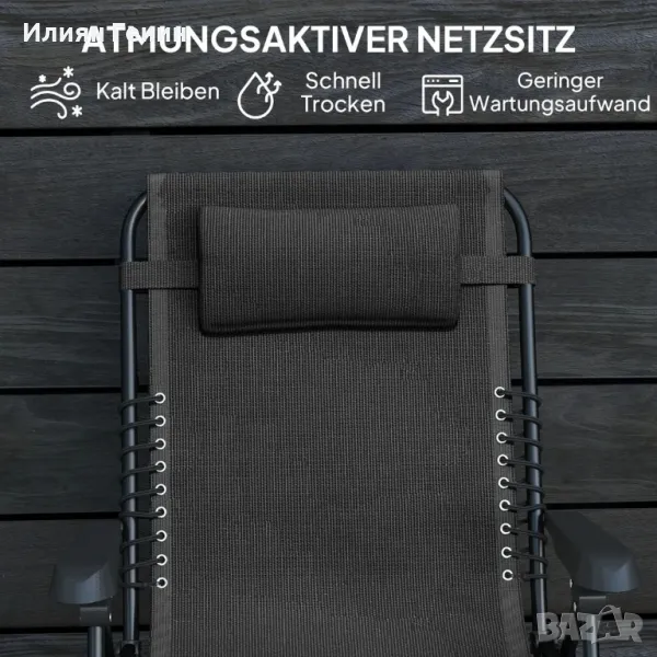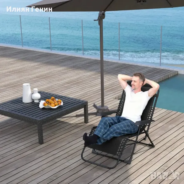 шезлонг Outsunny с облегалка за глава, регулируема облегалка в 5 посоки, издържа до 120 кг, черен - 100.00лв.