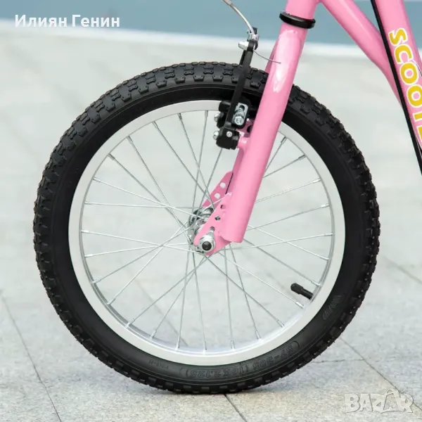 Детска тротинетка HOMCOM със спирачки 16/12 инча, дъска за 5+ години, розова, 135 x 58 x 92-100 см - 180.00лв.