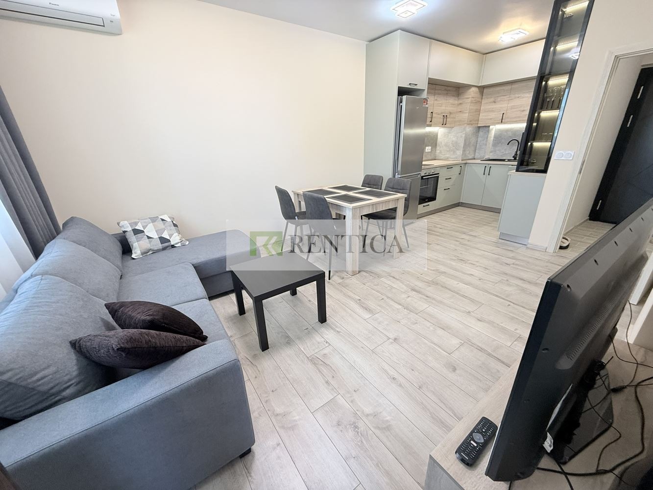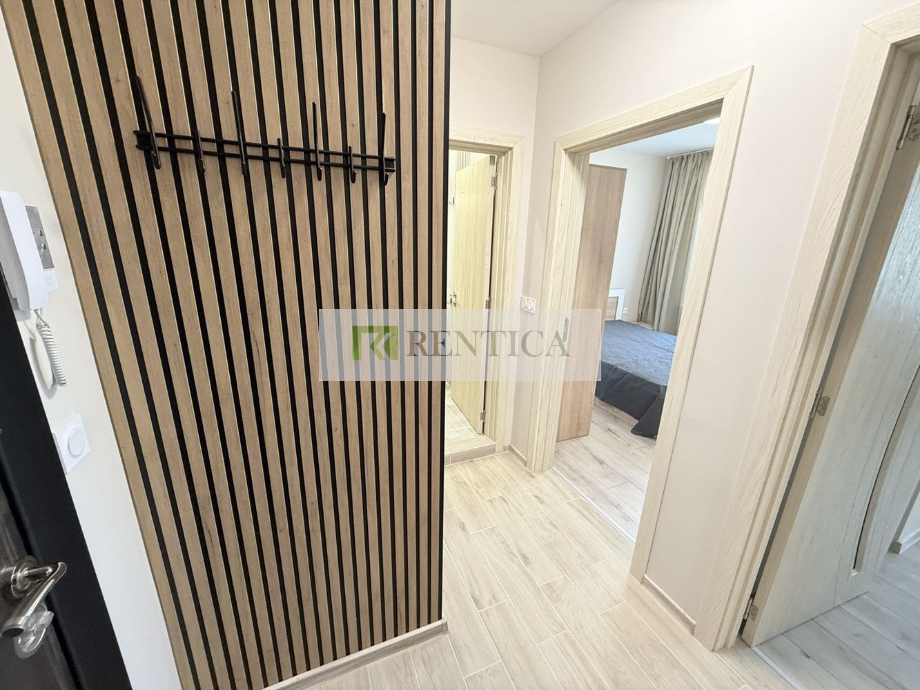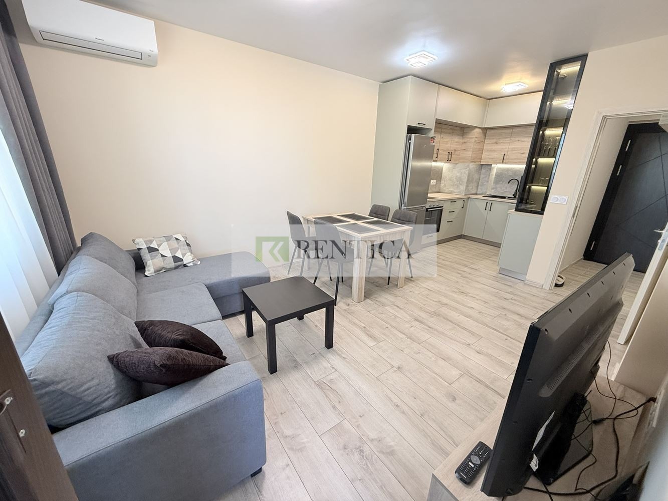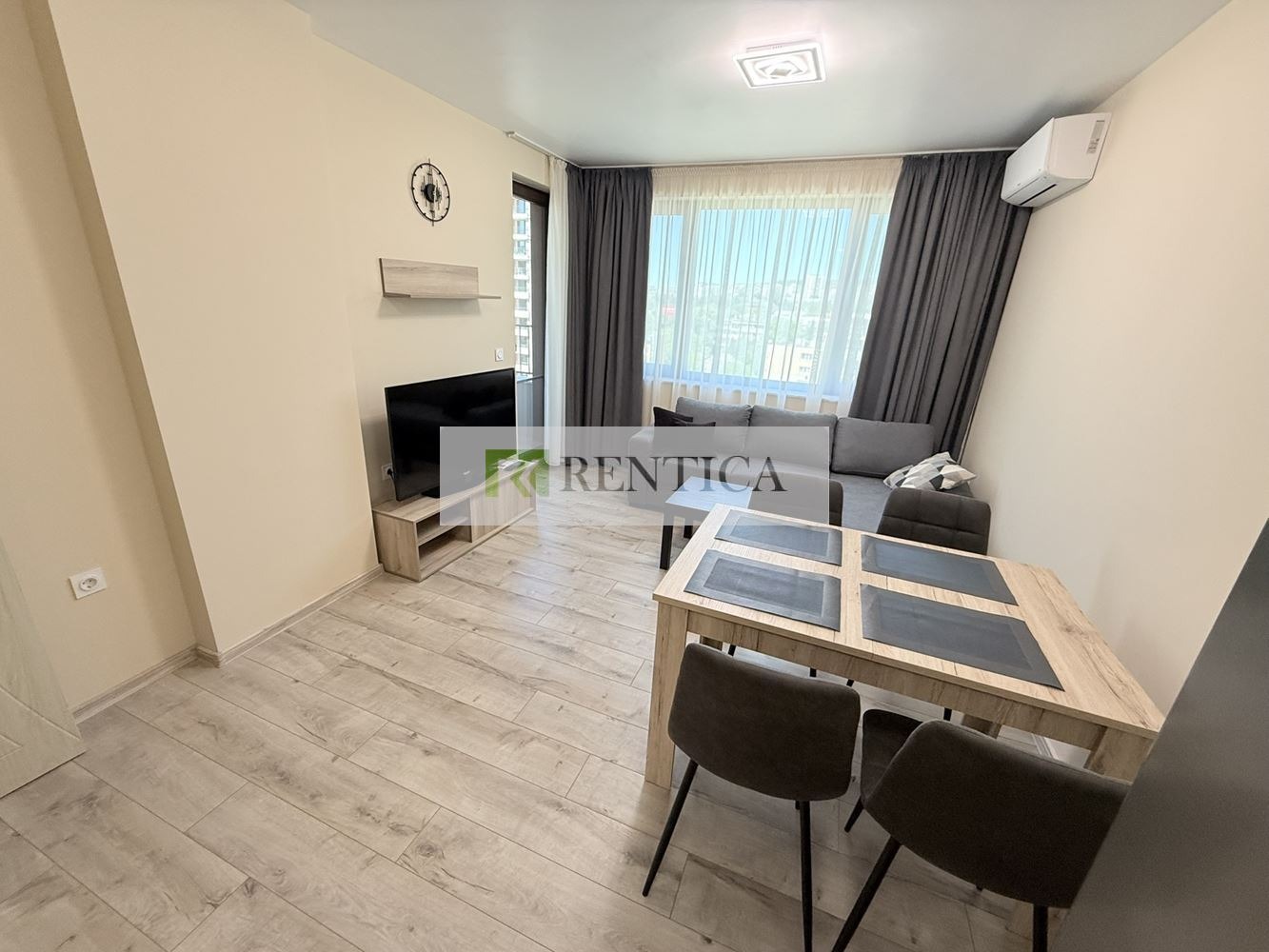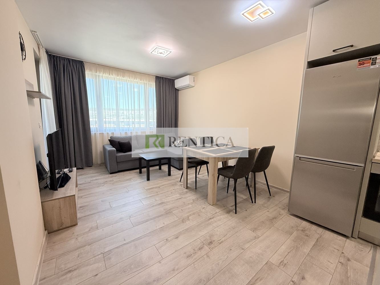 ОФЕРТА 8063 ✅Rentica.bg предлага под наем двустаен, ЧИСТО нов, луксозно обзаведен апартамент в кв. Победа, в близост до Гранд Мол Варна. Жилището е разположено на осми жилищен етаж в нова сграда, в комплекс от затворен тип, контролиран достъп, асансьор, отлично поддържани общи части. Състои се от коридор, дневна с кухня, спалня, балкон, баня с тоалет, килер с ПЕРАЛНЯ и СУШИЛНЯ. Имотът се предлага напълно обзаведен и оборудван. Климатизиран В ДВЕТЕ СТАИ!!! Отдава се дългосрочно.✅В цената е включно подземно ПАРКОМЯСТО и такса поддръжка на сградата.