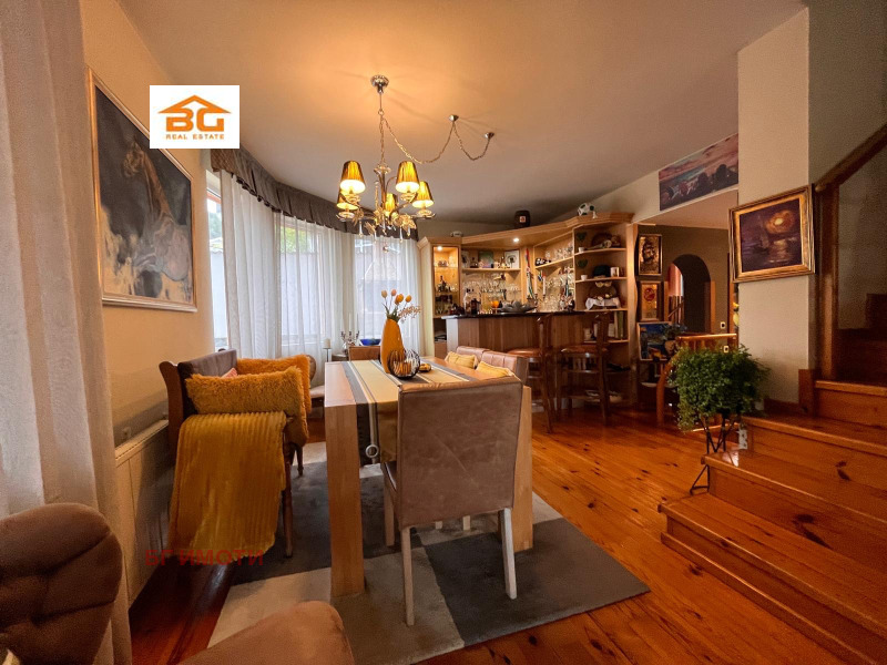 Хубава, уютна и много светла къща с френски прозорци, различна архитектура съобразена с местонахождението си, отлично разпределение и вътрешно стълбище, голям гараж с топла връзка, асфалтирана улица до имота, кът за барбекю, морска панорама, голяма покрита тераса, с кът за хранене и джакузи. Красиво аранжирана и озеленена градина. Подходяща и за инвестиция като къща за гости.
