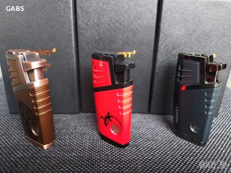 пури.Чудесен подарък с който може да зарадвате вас или вашите приятели.Запалката се предлага в 3 цвята,заедно със стилна подаръчна кутия.Пламакът е тип двоен джет.Пълни се и се регулира.Има сгъваем пънч за дупчене на пури и прозорче за нивото на газта.Размери на запалката 8×3.5 см,размер на подаръчна кутия 12×8 см.При поръчка получавате: