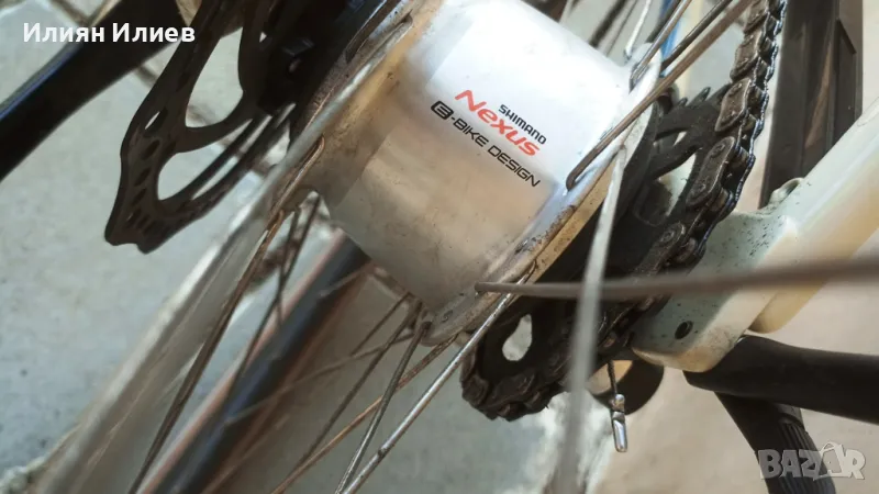 Истински расов жребец Шимано, много атрактивен и събира погледите на всички, ако търсите WOW ефект, това е вашето колело. Много запазено електрическо колело E-Bike 28", като ново с минимални следи от употреба. Всички екстри за едно електрическо колело - мощен безшумен мотор с 3 степени, набира бързо, с едно зареждане изминава 130км, компютър с дисплей, колелото е само на 3000км., барабанни скорости, ротационни команди, алуминиева рамка, преден фар и заден стоп, две хидравлични спирачки с дискове, преден амортисьор, двустенни Аеро капли, много удобна седалка с амортисьори, заден багажник до 27кг., атрактивен звънец, степенка, кожени ръкохватки от естествена кожа, ПРЕКРАСНО колело. Продава се със зарядно.