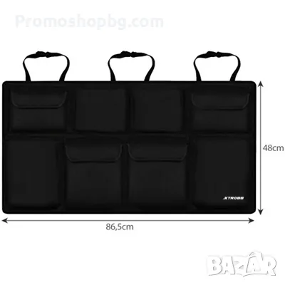 - няма да се движи по време на шофиране - благодарение на здравите закопчалки и допълнителното велкро закрепване към облегалката, органайзерът за багажник на автомобила остава стабилен дори на неравни пътища и по време на динамично спиране